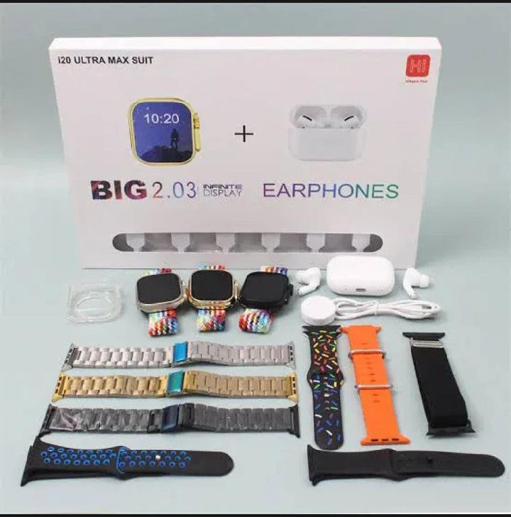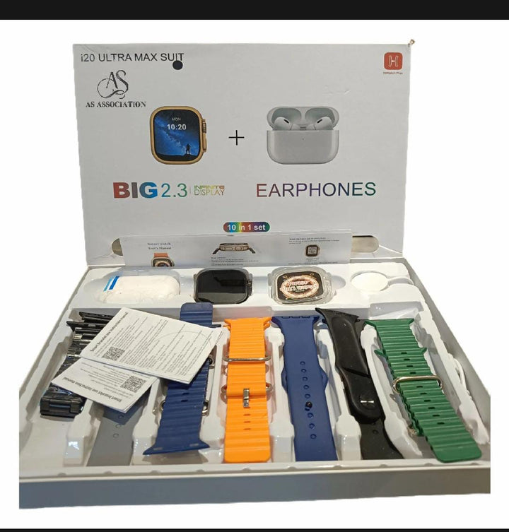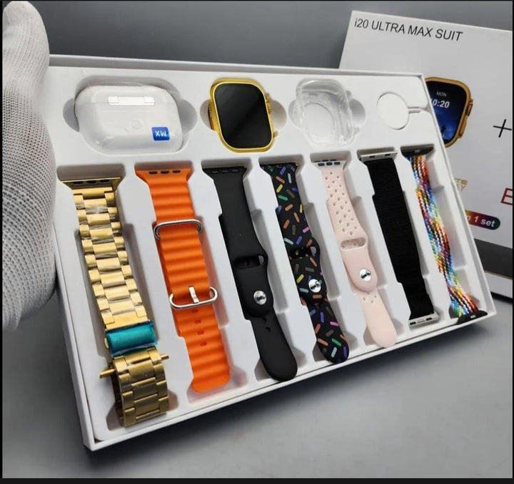 β¨ I20 Ultra Smart Watch β | 10 in 1 Smart Watch Set π | Ultra Max Smartwatch with Airpods π§ | Stylish Touch Watch for Boys πͺ |